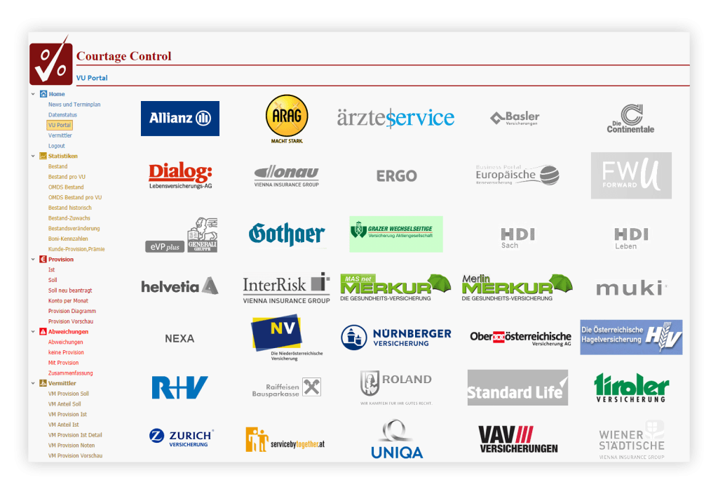 Courtage Control holt für Sie laufend Daten ab, bereitet diese auf und führt Datenaktualisierungen auf Ihrem System durch. Dabei haben Sie jederzeit die Kontrolle, welche Aktualisierungen durchgeführt werden sollen. Wir verarbeiten Daten von allen Versicherungsgesellschaften am österreichischen Markt, die regelmäßig elektronische Daten liefern.