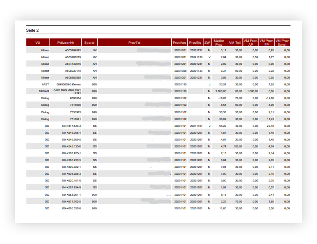 | Listung von Provisionen ohne Vertragszuordnung | ✓ |