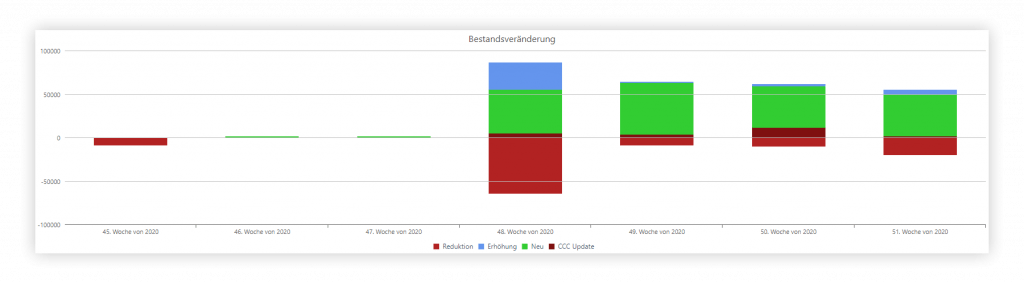 Wir führen über alle relevanten Veränderungen in Ihrem Bestand genaue Aufzeichnungen und fassen die Daten in aussagekräftigen Auswertungen zusammen. Sie erhalten auf einen Blick Auskunft über Status, Zuwachs und Prognose der Entwicklung des Unternehmens.